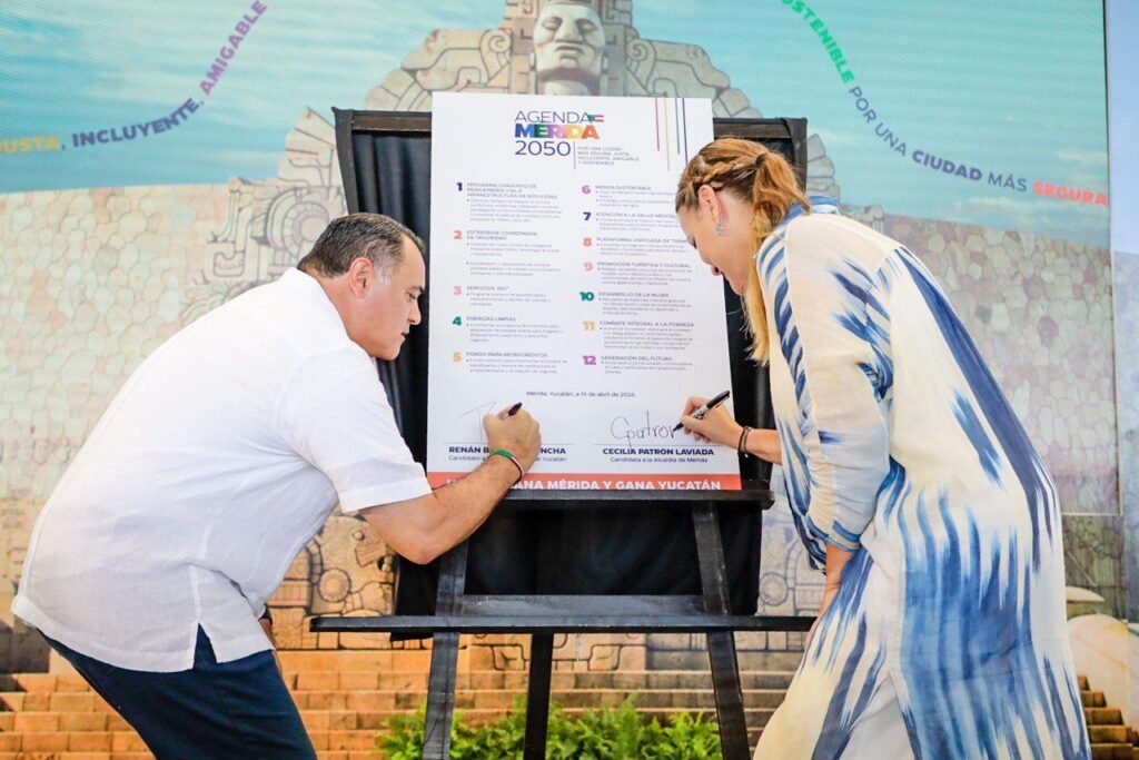 El candidato a la gubernatura de Yucatán por el PAN, PRI y Nueva Alianza, Renán Barrera Concha, y la candidata a la alcaldía de Mérida, Cecilia Patrón Laviada, suman esfuerzos y recursos al firmar la agenda 2050, con el objetivo de tener una ciudad más unida, más chula, más segura y más próspera para los siguientes años.
