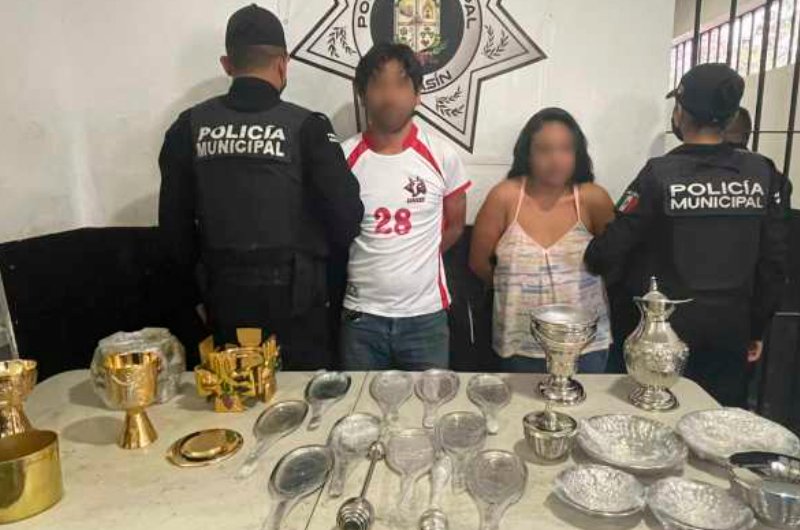 Agentes de la Policía Municipal de Kanasín detuvieron a una pareja que presuntamente sustrajo diversos utensilios con valor superior a los $50,000, que estaban en una iglesia en el Fraccionamiento Los Girasoles.