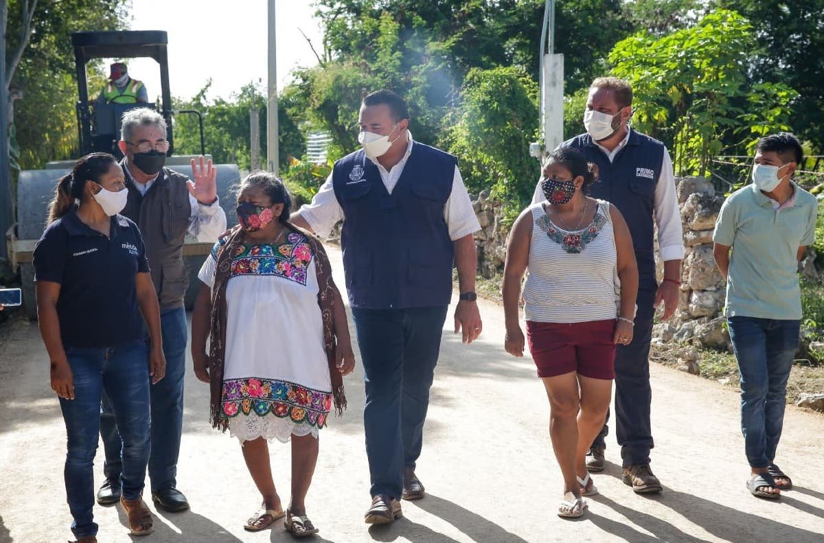 Primero el concejal visitó Dzidzilché, donde ante la comisaria Wilma Hoil Cumí y de un grupo de vecinas recorrió la nueva vialidad en la calle 25 entre 18 y 20.
