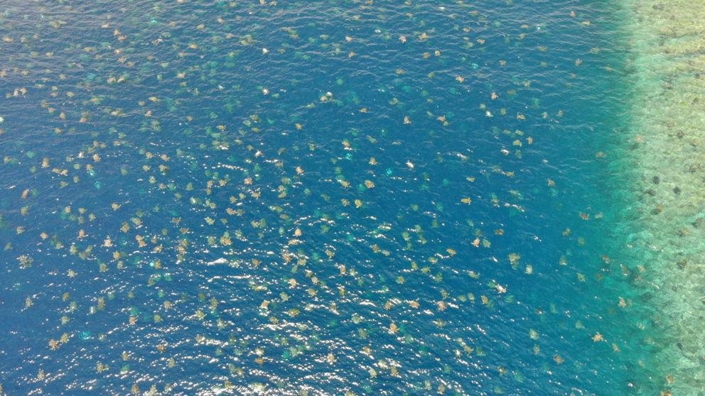 Capta imágenes espectaculares de decenas de miles de tortugas marinas en Australia