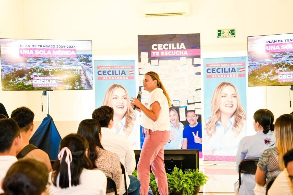 En el quinto día de su campaña electoral, Cecilia Patrón Laviada, candidata a la alcaldía de Mérida, se reunió con jóvenes para presentarles su innovador plan de gobierno, titulado “Una sola Mérida”, enfocado en generar más oportunidades y cambios significativos para la juventud de la ciudad.