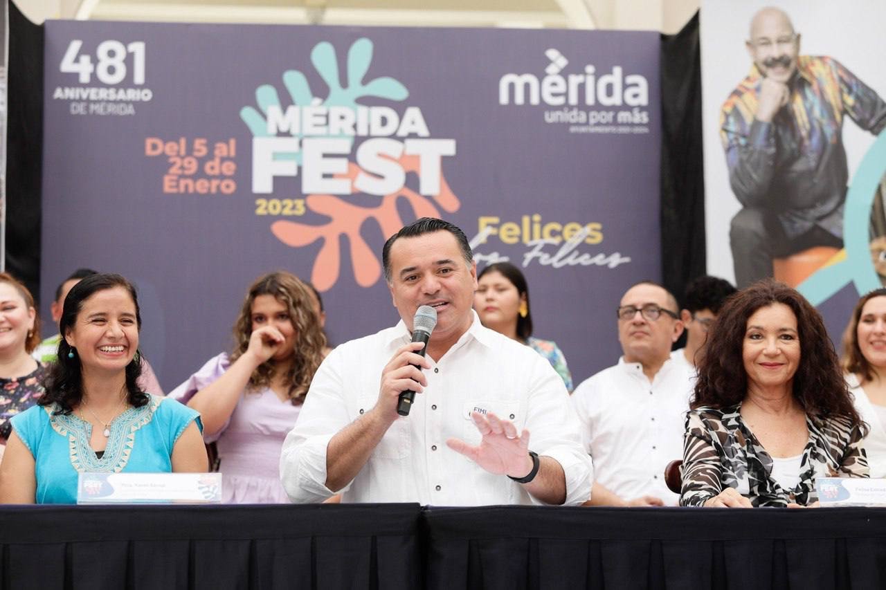 En el 481 aniversario de la ciudad se celebrará el “Mérida Fest: Felices los Felices” que tendrá una amplia oferta cultural, gastronómica y artística, dirigida para todas familias y visitantes que nos acompañarán del 5 al 29 de enero de 2023 a disfrutar en armonía los más de 768 artistas locales e internacionales que estarán en escena, informó el Alcalde Renán Barrera Concha.