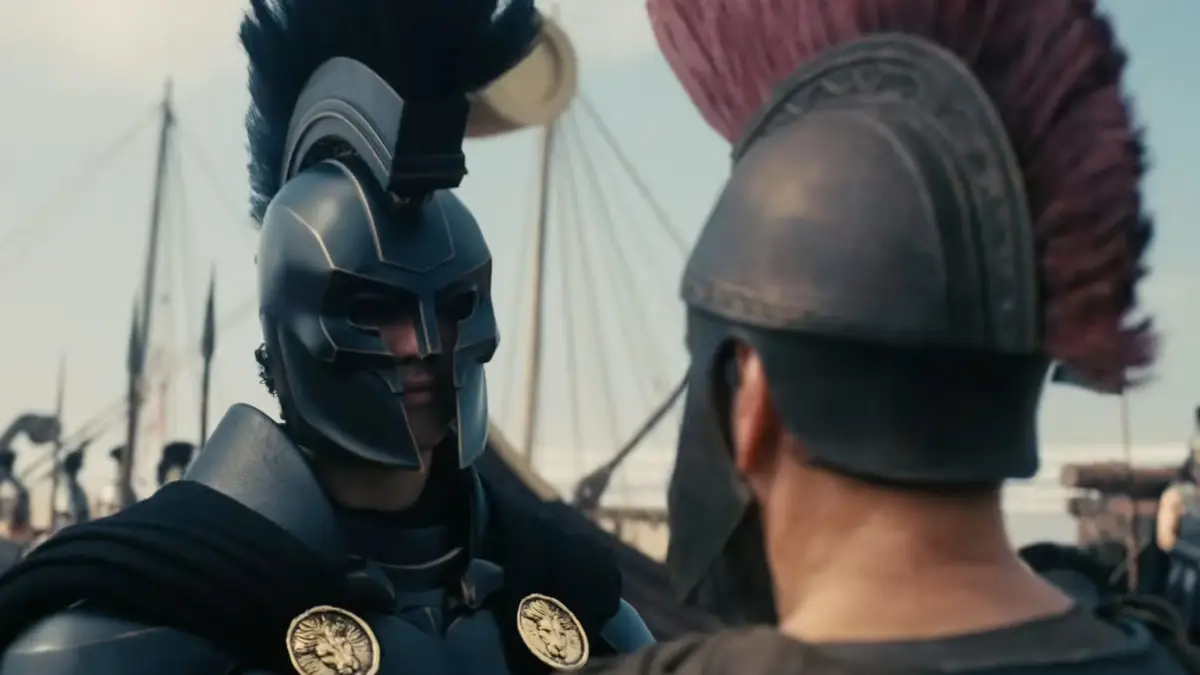El despliegue visual alcanza su punto álgido con la representación del caballo de Troya, concebido como una construcción gigantesca que los troyanos arrastran desde la orilla sin sospechar su contenido. El tráiler también deja entrever amenazas sobrenaturales, como la silueta de un ser colosal que recuerda al cíclope Polifemo, además de secuencias rodadas en mar abierto donde los barcos combaten olas reales, sin apoyarse en efectos digitales evidentes.