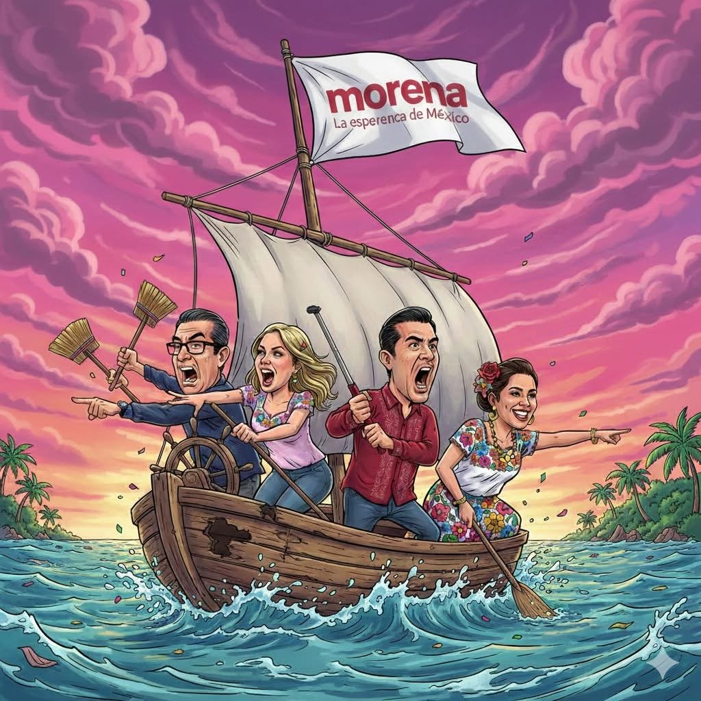 La escena es clara: el mandatario gobierna en soledad, rodeado por una tripulación que no rema, no obedece y, en muchos casos, parece más interesada en perforar el casco que en llegar a puerto. Morena Yucatán no opera como un proyecto político cohesionado, sino como un archipiélago de feudos donde cada dependencia hace lo que quiere, cuando quiere y —si se puede— sin pedir permiso.