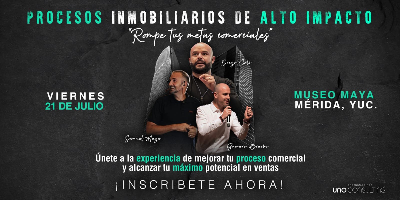 Este taller de ocho horas, se llevará a cabo el próximo viernes 21 de julio en el Gran Museo del Mundo Maya, y traerá consigo la visión de tres expertos de plazas en desarrollo inmobiliario de gran trascendencia en México; Queretaro y el Bajío con Gumaro Bracho, La Riviera Maya con Diego Coló y Samuel Maya en Mérida, lo que permitirá al participante enriquecer de manera amplia su conocimiento y estrategias para vender, que es el fin principal de cualquier proyecto inmobiliaria, pero con una vocación completa de atención humana, seguimiento, y satisfacción del cliente.