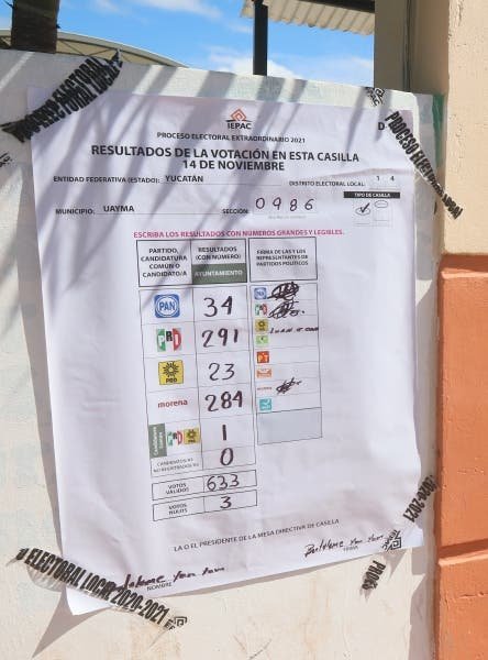 Los resultados oficiales en Uayma fueron: PRI, 1,254; Morena, 1,190; PAN, 201; PRD, 133; candidatura común PRI-PRD, 9; votos válidos 2,787 y votos nulos, 19.