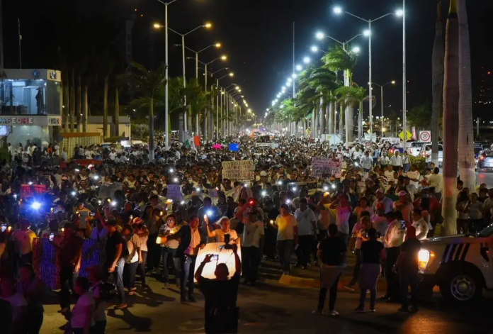 Bajo el contundente grito de “¡Fuera Layda, Fuera Layda!”, los ciudadanos expresaron su descontento durante la tarde y noche de la protesta, sumándose así a la exigencia que desde el 16 de marzo mantienen los policías estatales en una protesta pacífica.
