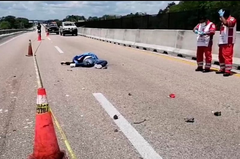 Un motociclista se impactó contra un volquete que laboraba en obra del Tren Maya, esto sobre el puente de Uxmal ubicado en el Kilómetro 84 de la carretera federal Campeche-Mérida, a la altura del municipio de Calkiní.