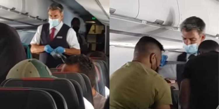 De acuerdo con un video que grabó un pasajero y compartió a un medio de comunicación estadounidense (CBSN), se observa a un grupo de personas entre pasajeros y el personal de la aerolínea, amarrando al menor en su asiento.