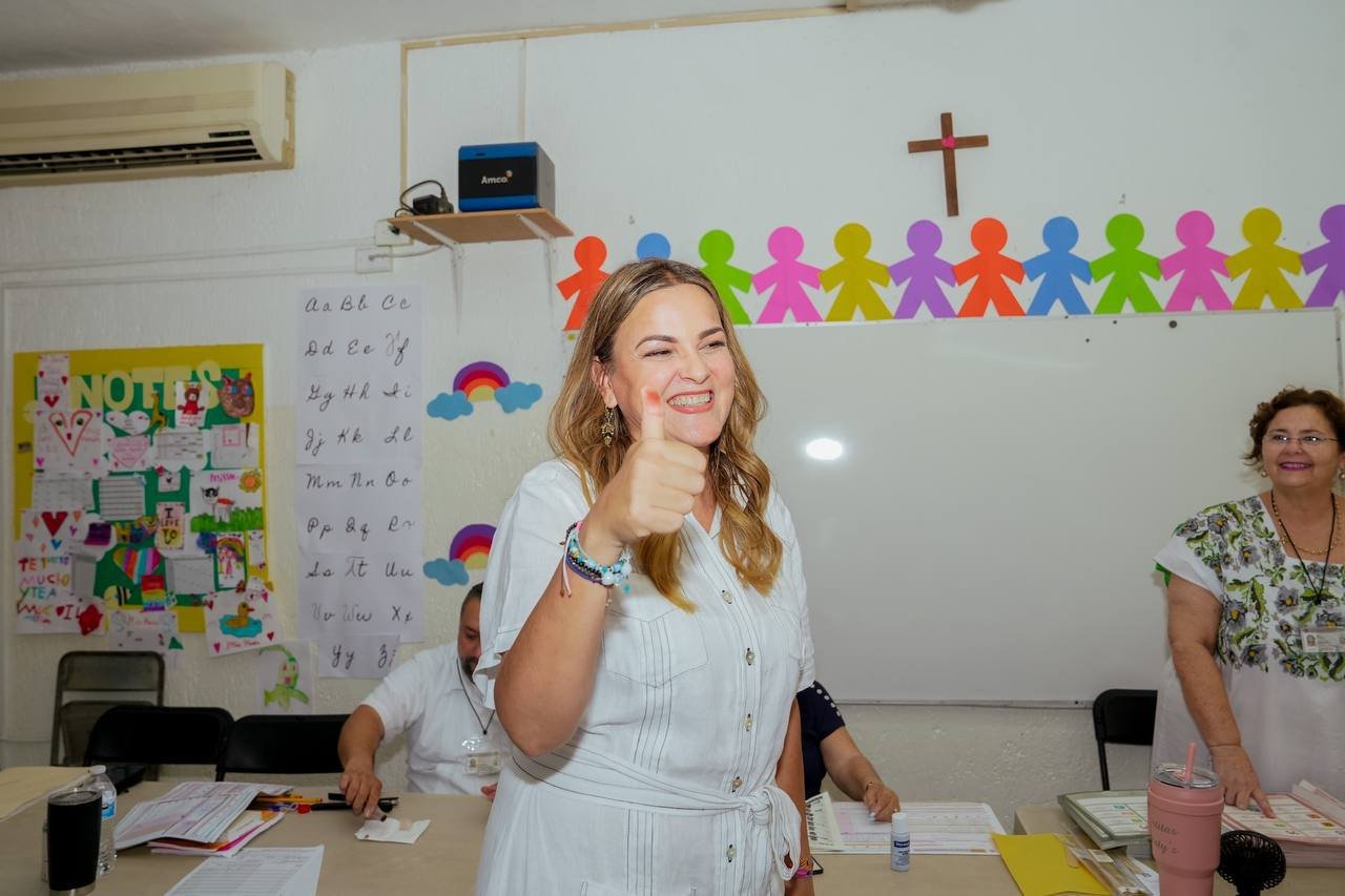 Alegre por el civismo que muestran los ciudadanos de Mérida, Cecilia Patrón Laviada, candidata a la alcaldía, emitió su voto alrededor del mediodía en la casilla ubicada en el Centro Educativo Renacimiento.