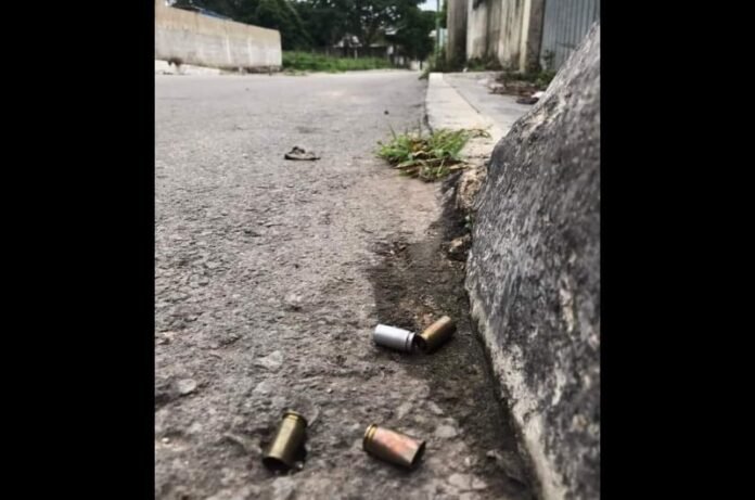 Al menos siete casquillos de bala de arma de nueve milímetros fueron encontrados en calle 24 de la colonia Centro, regados en la arteria junto y a un costado del local social del Sindicato de Maestros.