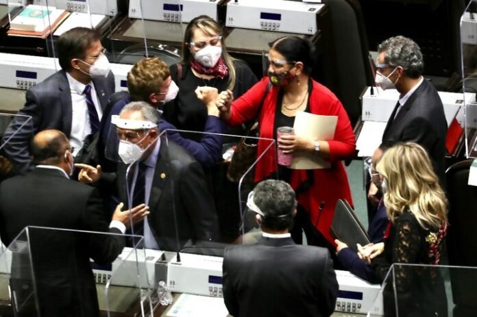 En su turno de votación, el coordinador de Morena, Mario Delgado, lo hizo en abstención y algunos de sus compañeros cambiaron el sentido de su voto: en los dos últimos dos minutos las expresiones en favor bajaron a 278; otros 112 sufragaron en contra –de ellos, 72 de Morena y 40 del PT.