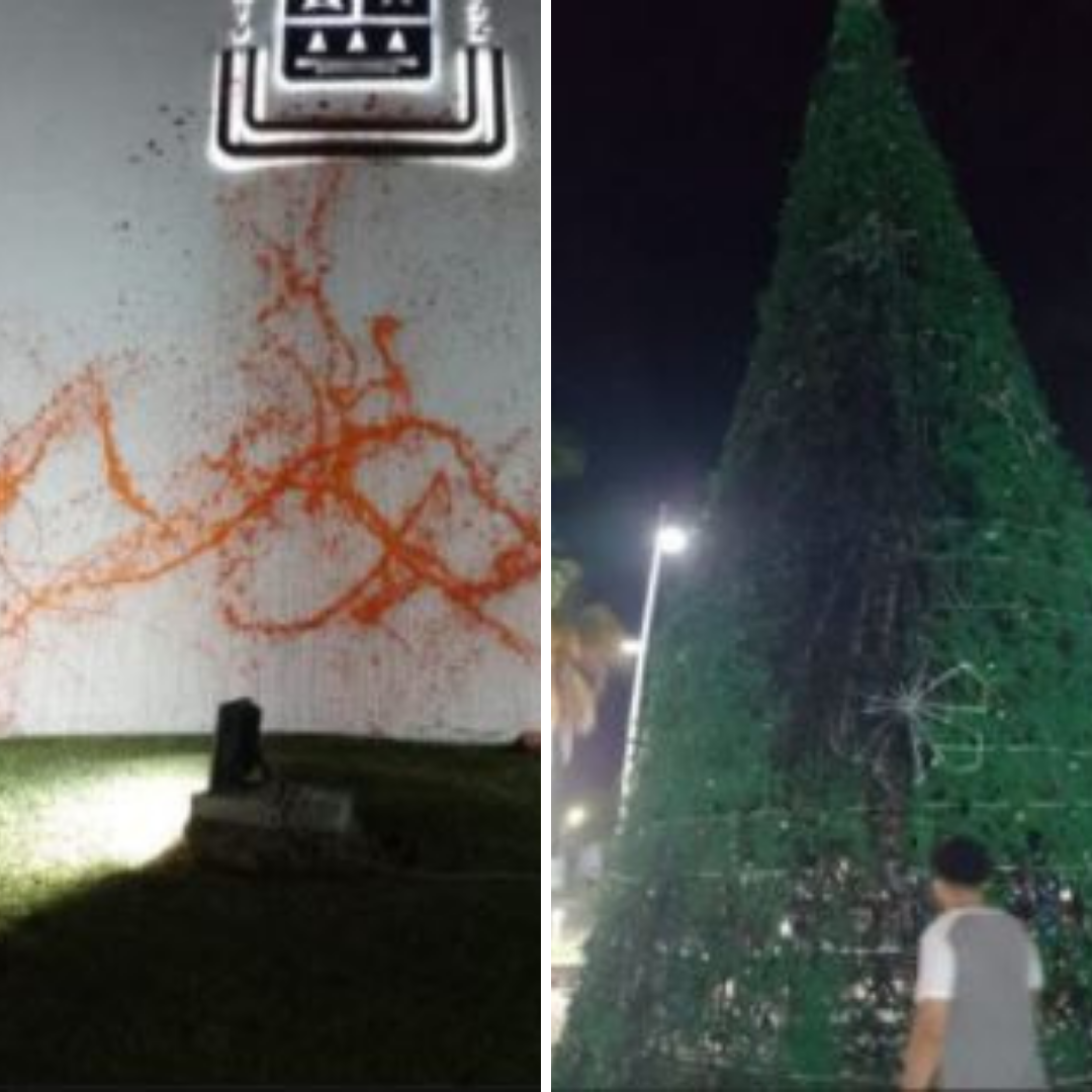 Pintan paredes e incendian árbol de Navidad en el Congreso de Quintana Roo
