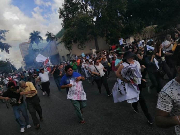 Nunca se ordenó lanzar el gas lacrimógeno al contingente, donde se encontraban niños, mujeres, y personas de la tercera edad, sin faltar los integrantes de los partidos políticos y sindicatos que hoy intentan ser oposición, dijo.