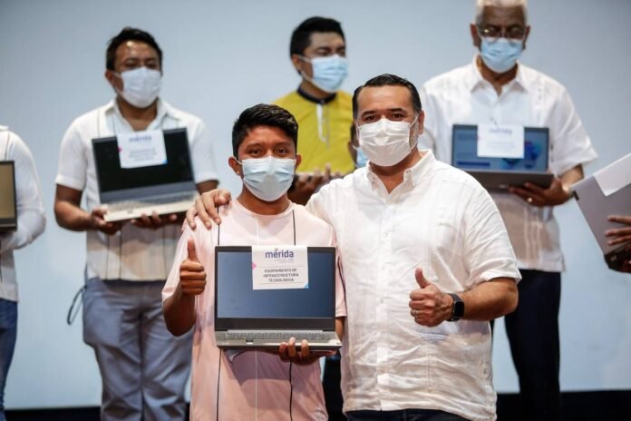 El alcalde Renán Barrera presidió la entrega 47 de equipos de cómputo a comisarios y comisarias de Mérida para reforzar los canales de comunicación entre el Ayuntamiento y las comunidades rurales.