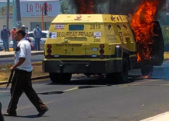 Un camión de transporte de valores de la empresa Cometra se incendió en la colonia Centro por causas desconocidas.