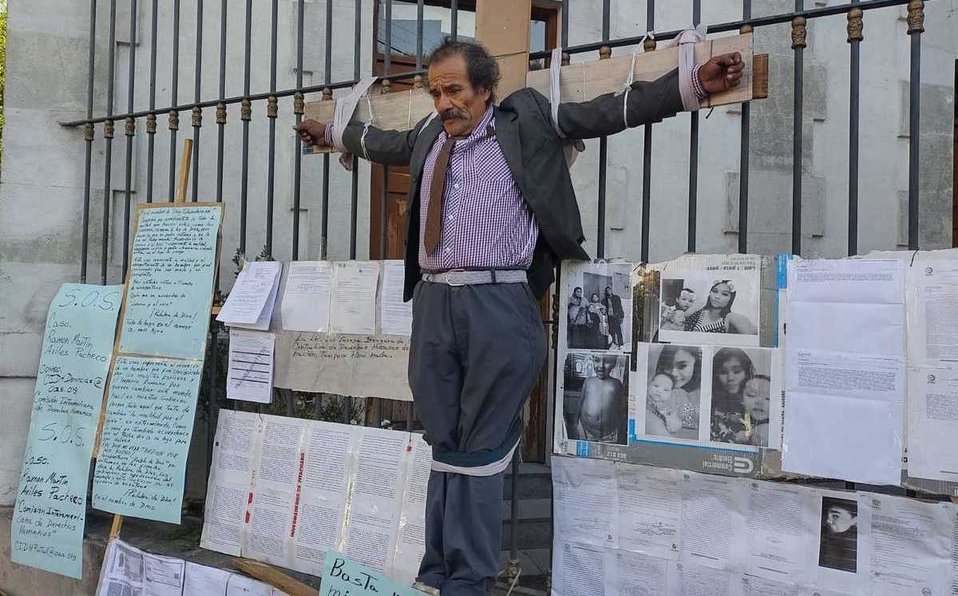 El señor Ramón Martín Avilés Pacheco, un hombre de la tercera edad, se crucificó en los barrotes de la Secretaría de Gobernación (Segob) para exigir el apoyo de las autoridades, pues denuncia que su hija fue secuestrada desde 2015.