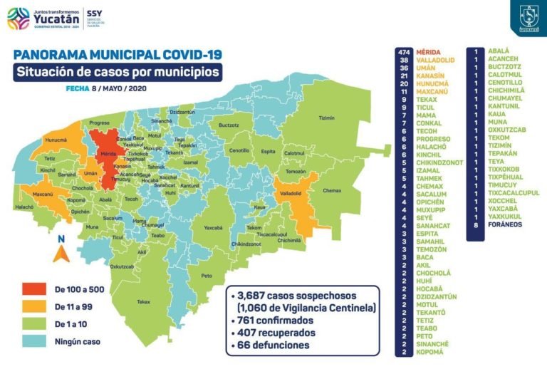 Ya suman 761 casos positivos de Covid–19 en Yucatán
