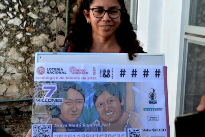 “Trabajo Digno”, mural pintado por la artista yucateca Draya Madú Ramírez Pool, será plasmado en billetes de la Lotería Nacional para el mes de febrero.