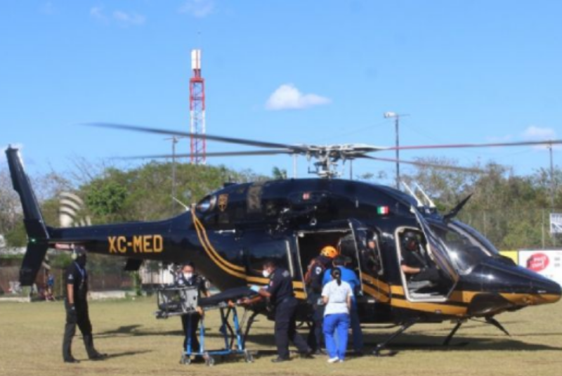 A bordo de otra ambulancia fue llevado hasta el campo deportivo de la colonia Sebastián Molas, donde aterrizó el helicóptero de la SSP, que lo trajo al nosocomio en Mérida, donde fue ingresado para su pronta atención.