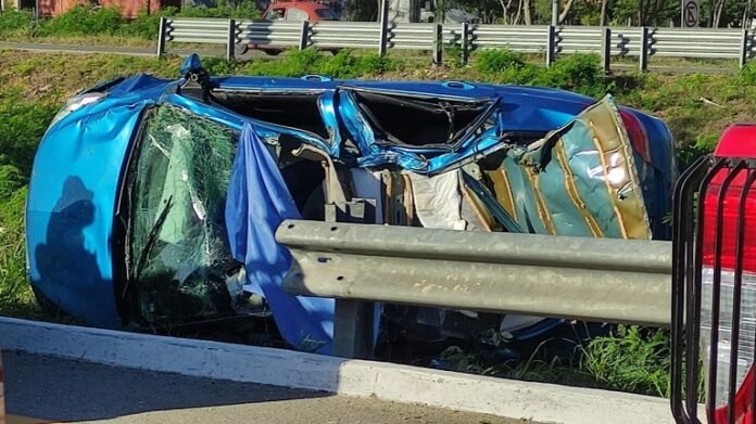 Automovilistas alertaron a la policía de la tragedia, en la que un auto volcó sobre el kilómetro 11+500. Al lugar llegaron elementos de la Policía Estatal y paramédicos quiénes trasladaron de emergencia al hospital al conductor Elías H de 27 años y el copiloto Miguel Estrella, falleció en el lugar.